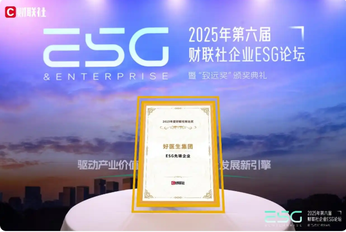 10 月 31 日,2025年第六届财联社企业ESG论坛暨“致远奖”颁奖典礼在北京隆重举行,好医生集团凭借在环境治理、社会责任与公司治理领域的系统性实践和突出成效,荣膺“ESG先锋企业奖”,成为医药行业可持续发展的标杆典范。