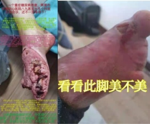 大家看?我们华夏中医明明有很多方法可治愈糖尿病脚!而在中西医结合:中不中西不西的中医总院里,却又要被锯脚!而且“是在中医院里”。自然,中心医院人民医院病人已经看了十多年,所有的糖尿病脚的治疗结果就是一样的锯脚。还有许多晚期癌症,已经被医学判处死刑,无药可治!可中医蜂疗又能把病人从阎王爷哪里拉回来了。可是,被医学洗脑家属往往还是不相信中医蜂疗,又要千方百计的去上海北京的各大医院里开刀锯脚,放疗化疗!结果花费几十万,又把自己活的好好的亲人,送回到阎王爷哪里去了。被西方文化入侵的我们,中医药被颠覆!所谓的医学医疗?就是个吃人的资本利益集团血腥治疗?而且是个是个吃人不吐骨头的医学医疗。病人家属虽人财两空,却也只能哑巴吃黄连有口难诉!人被治疗死了家属也要给医疗的侩子手交钱!而且这样的治疗已经是主流医疗的治疗常态。这样的治疗,医院是不是成了杀人的魔窟?我们是社会主义国家,美帝西方的好东西要学,好科技要学,然而不好的就必须杜绝。学西方的资本医疗是不符合中国国情的,国家的政策法律都倾斜在西医主导的资本医疗里是有问题的。要是错误医疗继续存在,老百姓就要继续遭殃了。国家的医保给了这样的医疗,那是助纣为虐。几万亿的国家医保是国家为全国人民保驾护航驱除病魔的利剑。可这样错误的医学治疗,却给病人带来了灾难,而且是大家包括领导和医生自己都认为是正确的。大家说对吗?如果是对的,那么医生自己和家属,得了糖尿病脚,也会成为错误医疗的牺牲品。当然是西医医生自己也得了糖尿病脚,也难逃被锯脚和截肢死亡的噩运!因为它们的错误治疗结果是一样一样的。政府官员,政策制定者如果也是这样病,结局也是一样的。它不会因为你是领导而格外开恩!因为主流医学就那点技术。我们是社会主义国家,一定不可助纣为虐!而让这样血腥的错误的残酷的治疗继续存在,如果继续,哪肯定是人民的灾难!错误的医学必需及时纠正。
