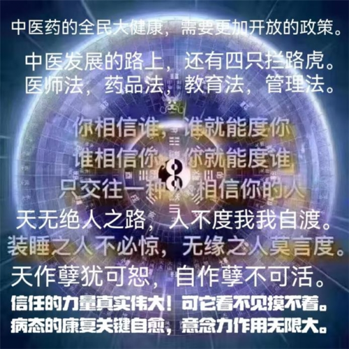 人生不如意十有八九!可是养生就不能等到危急生命来不及时,才想起去看和研究中医。俗语说:“高手在民间”,很多高人隐于道观寺庙。他们用纯正心念和中医方法为人治病,用祝由等道方法,为信徒解除病痛,常常让患者病痛不药而愈,甚至起死回生!这是主流科学医学里没有的。不过,无证良医再牛皮,也不敢在充满邪恶歪理的人群里伸手和病魔较劲!因为,民间中医如果伸手,治愈成功了,病人会说一声谢谢!而如果救不活!那就罪孽深重,甚至吃官司。自然国家也看到了;人民群众不能见死不救?所以,国家出台了一个中医救援证的政策,用以保护民间中医的施救者。医院里的死活是没有责任的!许多医疗事故,也会因为话语权在医院手里,而病人得不到公正的对待,钱肯定是一分都不能少。医患关系紧张!而法律只能首先保护治病救人的施治者,否则医院就无法营业医治了!因为人心不一。医院治疗疾病靠的是医生的技术和医德良心。人们本该都好好珍惜自己的内心,更要保护好自己的身体和医生。但是,许多的病人,或许是扭曲变态,才是身体造成的不适和病根。是内心的呼唤和求救信号,能随时解决内心呼唤和求救信号,将疾病消除在发生的萌芽状态,是中医高手的最完整医学,它带给人的定是生活幸福和快乐。疾病和情绪息息相关,而那些固执而不听良言的,哪怕是神仙,医者也只能回头做好自己了。哪怕是真正的神仙活佛,它也只能把病人的愿望还给病人了。做人应活在当下!我们千万不要忽略了那些隐藏在情绪底层的巨大伤口。常听人说,气死我了,压力很大,