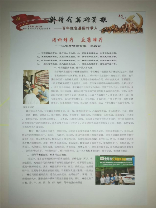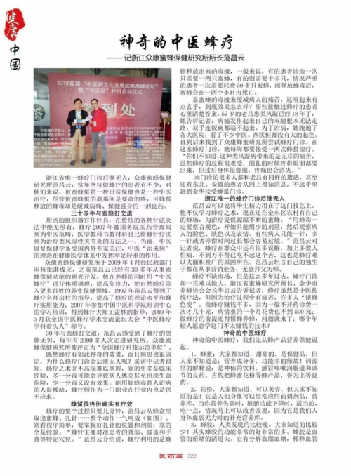 中医蜂疗,是中医智能养生医学的营养钵。疫苗是单一的生命体,只能对于一种病毒有效;而蜂毒等蜂产品则是多功能生命体,特别是特具活性的“蜂毒”,其抗击病毒具有特殊意义。因此,抗击病毒,单一智能医学的成功,也正是医学利用了这一原理,所以制造了疫苗。而蜂医生命医学往往还是多种物质的组合,如“蜂毒”甚至是几百几千上万种的组合。这个庞大的生命群体,除了单一的功能外,还具有不同物质叠加的效应原理。应用单一活性有机生命体,可以活激病痛状态下身体比较健康的身体机体:而多种生命体组合时,却能全面激活人体细胞,短期内使人体各生理功可能达到高峰或超级状态能力。中医蜂疗蜂蛰经络穴位,有双重的甚至多重治疗作用:一是经络疏通,营养及时输送(经络血管是人体营养通道),血栓祛除而病痛消失。穴位是交汇节点,最容易堵塞和改变人体气血的经络运行!而蜂毒中的众多生命体活性物质,在蜂蛰穴位时,毒素血栓又能够及时被祛除疏通并激活。所以蜂蛰经络穴位,犹如钥匙开锁,开关送电。只要“身体气血”电源充作,钥匙一扭锁即可开,电源一送电器既能正常工作。“蜂毒活性物质”(多种生命体)在穴位渗透的刺激作用下,身体瞬间恢复功能已成常态,年轻身体和亚健康的效果尤为明显。此状态下,身体可将诸多变异细胞瞬间激活和正常,并可同步将异体变异细胞病毒以及肿瘤癌症病毒消灭于萌芽状态。实践证明;生命医学能同步杀灭诸多病毒和癌细胞等的变化,往往是肉眼可见的,是有科学道理的。人类生命医学,并没有西方医学分的那么精细,也不需要那么精细,更不需要那么复杂!就如吃饭!而粗茶淡饭还更养人。有人说:古代人没有现代人长寿?大家想想看?我们这一代人,有没有战争?我们生活在和平如天堂般的中国,所以我们长寿了!你再去看看战争中的俄罗斯,乌克兰,巴勒斯坦,叙利亚,利比亚,阿富汗等国,年轻一代的几百上千万人,甚至还在襁褓中的儿童,就这样早早地就没了!他们国家有平均寿命吗。古代先人也一样,没有长寿的原因也是“战争与饥饿”!反过来,饥饿的原因就是战争。动物和我们人类大家都吃五谷杂粮自然的长大,各自都有一套生存法则!而人类各种病痛的治疗,只有我们的祖先可以用中医阴阳互补的天然物质得以平衡和纠正。中医蜂疗的蜂毒等诸多高蛋白产品,正是具有这样多能性智能医学的物质基础的认识:所以,蜂疗老范在了解到新馆肺炎病毒病情情况后的第三天,二零二零年的正月初二,就敢挑战武汉新馆肺炎病毒。