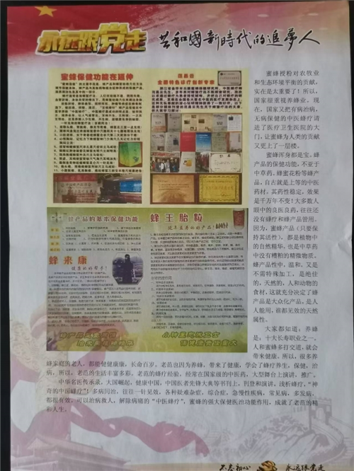 老天给我的任务是;带领世间整个医学向前发展。我们人类的身体,结果亿万年来的大自然雕琢,才形成了现在的身体,所以调节治疗身体,也必须遵循大自然的健康修复模式。蜜蜂:是大自然最勤快,最完整,最完美的搬运工。它所采集的蜂产品,蜂蜜花粉蜂胶和由它自身所运化而成的如:蜂蜡蜂王浆乃至身体,都集中了大自然中绝大多数的地球宇宙物质。所以,亲近蜜蜂,就是亲近大自然,多吃蜂产品就能保健而可以让你延年益寿。还有,我们人类有一个致命的缺点!就是,一个好好的身体,会因为某一条经络或者是血管的堵塞,就会浑身无劲!某一个零部件的缺失,而导致全身瘫痪。更甚至是一个急性心脑血管疾病,而命丧黄泉。再的,中医蜂疗有一个最伟大优点,就是可以针对性的,及时,迅速的疏通并修复好和救治并治愈如急性心脑血管堵塞疾病(前提是;需要经常吃点蜂产品)。因为,蜂毒的活性健康物质,对人类高蛋白质过剩身体,会出现过敏抵抗反应。所以多吃蜂产品,会因蜂产品的化学物质和蜂毒的化学物质基本一致而产生抗体,不会产生过敏。所以,在用蜂蛰疗法急救时,不用担心蜂疗时出现严重反应。“蜂胶蜂花粉和蜂王浆都可以脱敏,而且效果很好”。多吃蜜蜂产品,既能养生保健,保驾护航,在身体疾病侵犯临危时,也可以救命!而不会因为一个在急性心脑血管疾病时,一个小血管的堵塞,而影响整个身体生命。更不会因为,一次小小的失误,而导致丧失整个人生的悲惨生活质量。家中的顶梁柱的生命措失,会给整个家庭带来灾难。经常做中医蜂疗保健,就会减少罹患和产生经络以及心脑血管的堵塞风险。也不会因为偶然的心脑血管疾病,而出现不会半身不遂!即使出现半身不遂,如果是时间短和不怎么严重的,中医蜂疗也能快速治愈,更不需要常年吃药,或命丧黄泉,撒手人寰。中医蜂疗,它不仅仅是可以治病,而且是还可及时救命!望兄弟姐妹们参详。平常多吃蜂产品保健,可以养生保健,美容养颜,让你延年益寿生活美满,身体健康,更可救命。中医蜂疗无形救命是经常的,且不管什么肿瘤肿块囊肿结节增生癌症,中医蜂疗都有效果。养蜂人是世界上最长寿的职业。