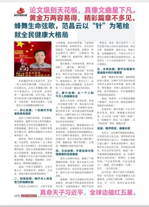 凝聚中国力量,稳定世界态势。发挥蜂医作用,和谐全球民众。
