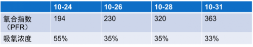 血气分析: pH: 7.36、PaO2 : 72.6mmHg ↓ 、PaCO2 : 27.1mmHg,HCO3- 14.8mmol/L,乳酸1.4mmol/L(氧合指数:136mmHg),指脉氧88%
